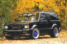 Blazer with the speed of a Bullet People do a double take when they hear the new version of the powerful S-10 Blazer. With its 330HP, and AWD System, it does 0-100 km/h in almost an incredible 5.2 seconds, which means this truck stands alone in its class. At a top speed of 232 km/h, and weight of 2 tons, the wonderful aerodynamics are indeed a feat. The 330HP version, a turbocharged, intercooled 4.6 liter V-6, also has custom tuned exhaust and chip, and is available with either a 5-speed manual, or 4-speed automatic transmission. But if that is not enough, Geiger can bump up the horsepower to anything. Their 5.7 liter V-8, coupled with a twin-turbo system and fuel injection, brings the horsepower to 480, with 750Nm feet of torque at 3750 rpm. With its top speed of 280 km/h, no one could ask for anything more. Obviously, this is not a normal street vehicle, so Geiger attached special cladding, shocks and 18" wheels and tires. The front consists of 8.5" X 18" aluminum wheels with 255/40 tires, while the back receives 345/35. Geiger pays special attention to detail, including heated seats, a special body kit, and a burlwood interior. The 355HP 2-Door version is DM.145,000; the 4-Door version is DM. 147,000. The 330 HP version also comes with 245 sized tires in the front and 285 sized tires in the rear. It consists of the same options, for DM. 99,800